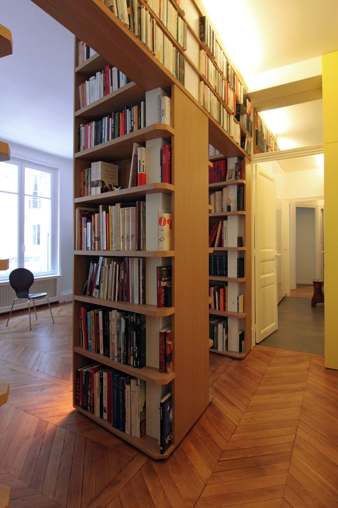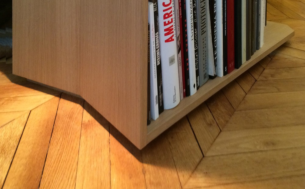 Bibliothèque sur mesure en plaqué de chêne vernis mat velours