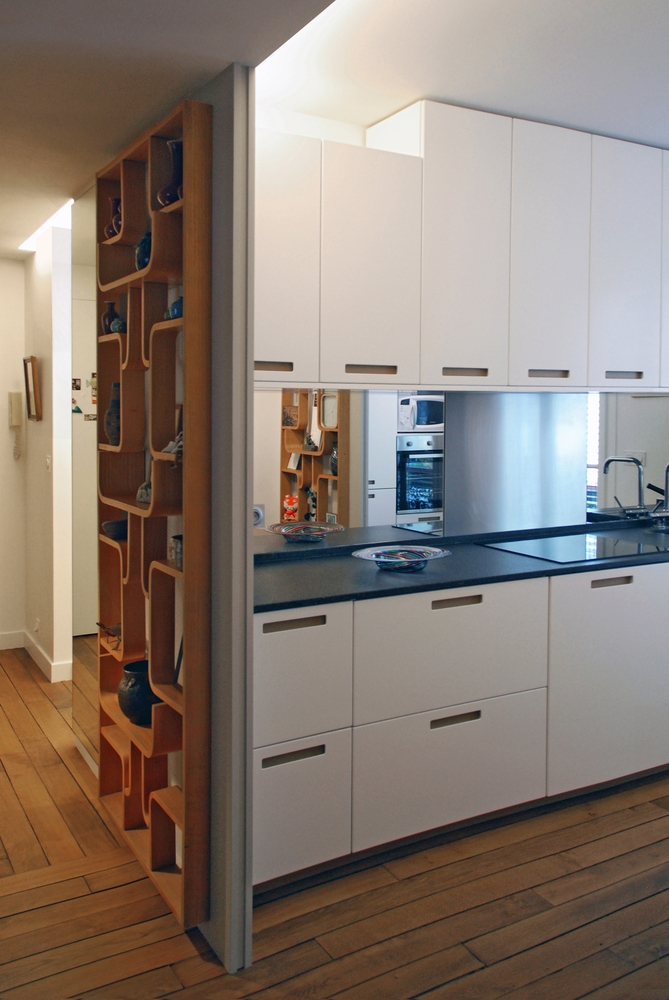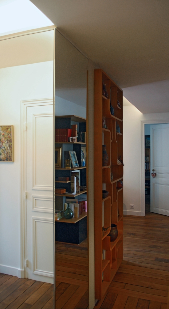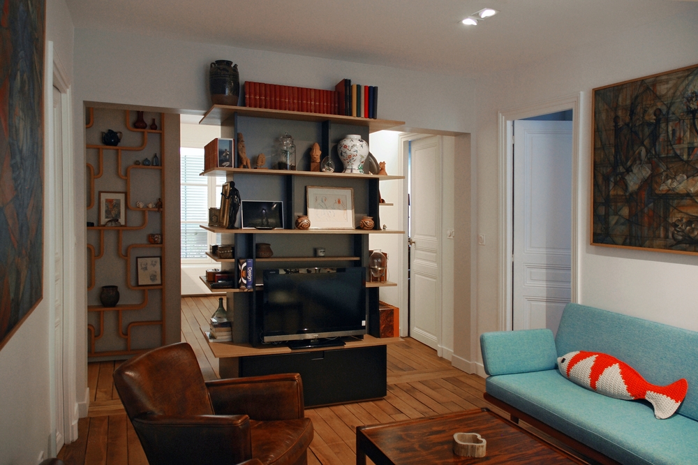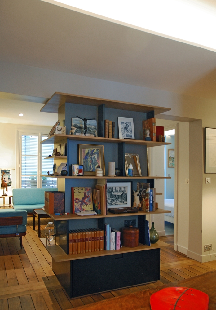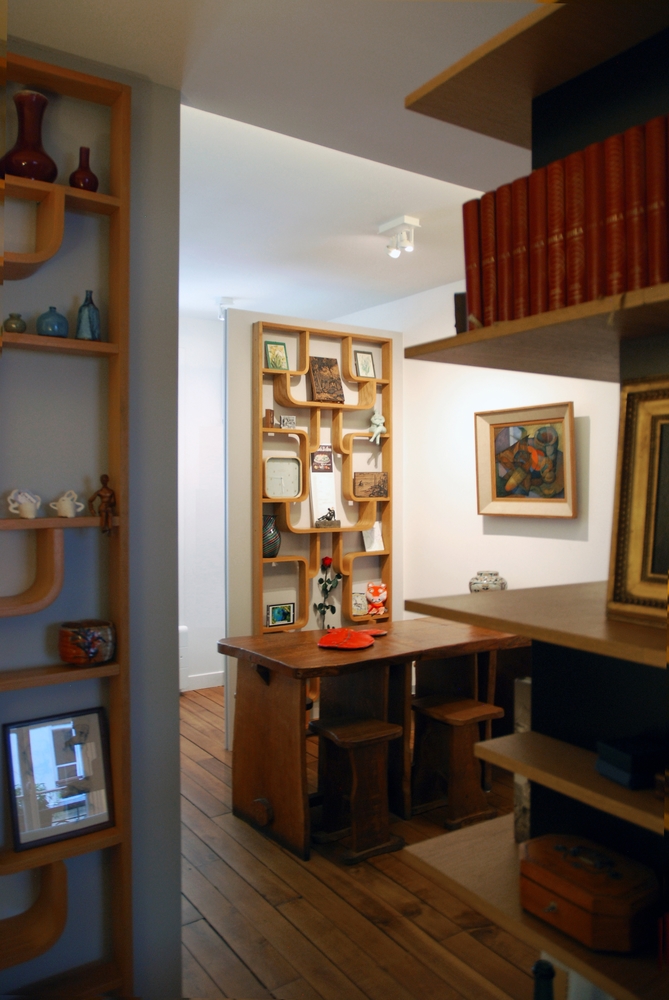 Réutilisation de mobilier existant (claustra ou étagère 1950, designer Jindrich Halabala)