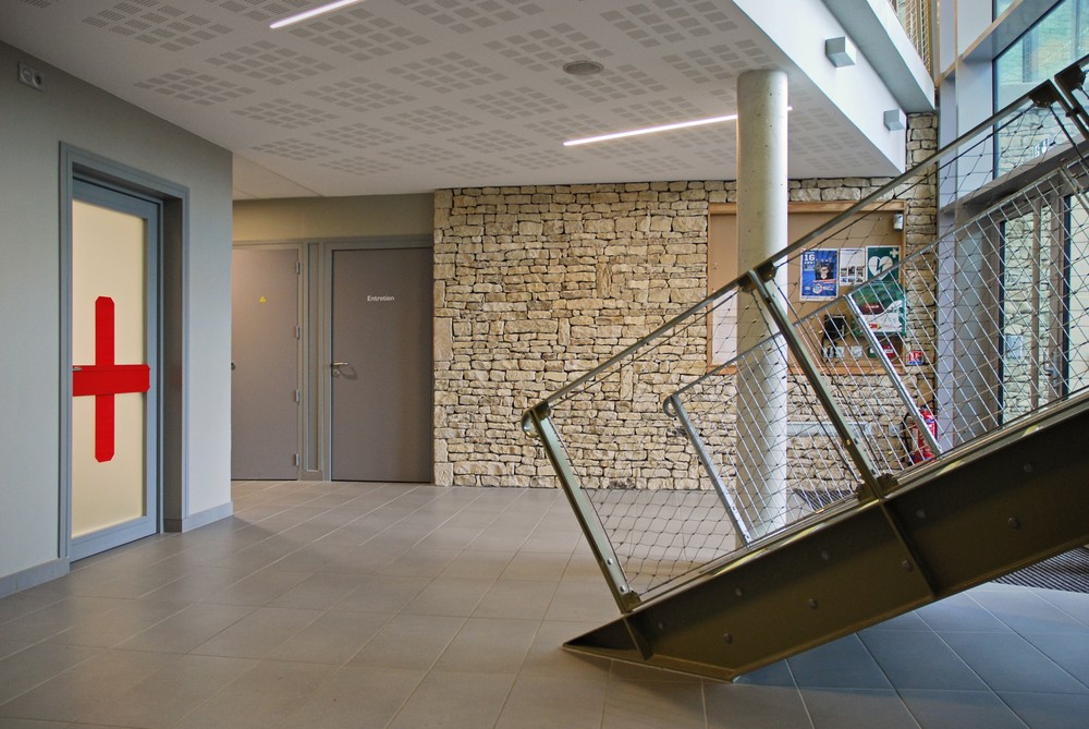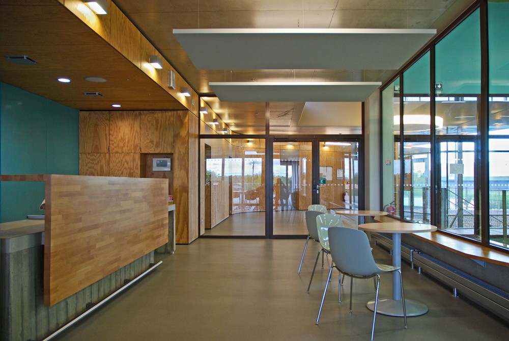 L’implantation et les matériaux figurent un bâtiment ancré dans le territoire avec lequel il entretient des relations physiques et visuelles fortes.