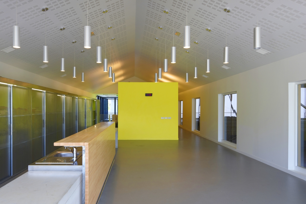 Une toiture végétalisée recouvre la totalité des espaces bâtis, se prolongeant ponctuellement en pente douce dans la continuité du sol.