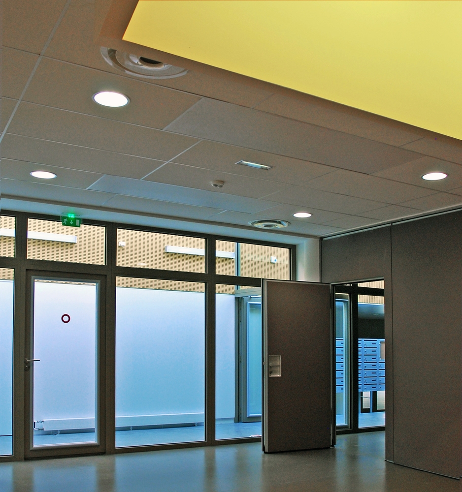 Au stade du concours le projet proposait d’agrandir l’atrium/hall existant afin d’offrir une liaison en double hauteur pour rendre encore plus lisible, dès l’entrée, la compréhension du fonctionnement de l’ensemble.