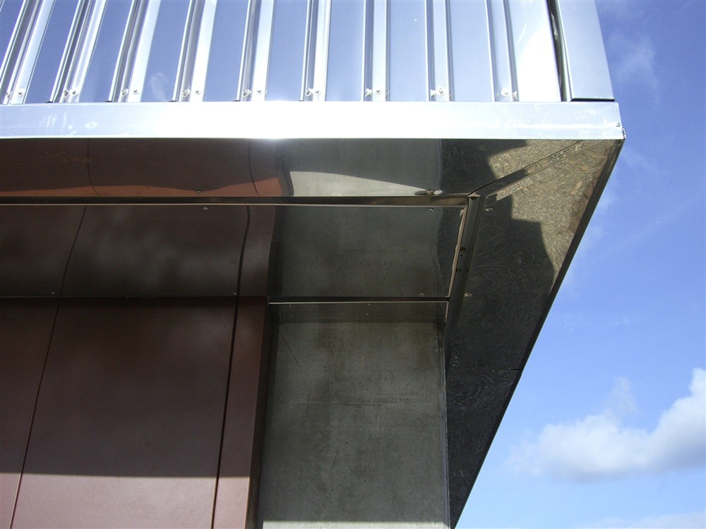 Intégration dans l'environnement par la réflexion du paysage dans les façades en inox miroir