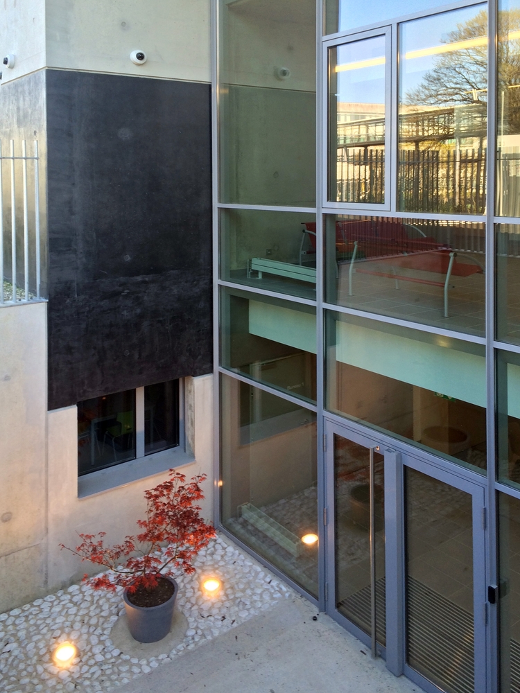 La composition architecturale compacte répond à une triple volonté : décomposer l’échelle, simplifier la lecture du bâtiment et conférer à cet espace une identité d’équipement public contemporain.